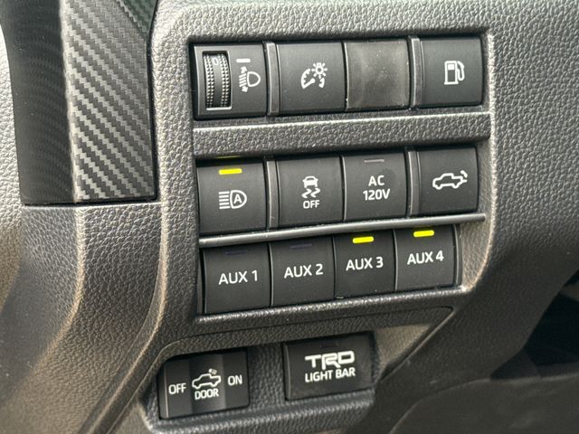 - "TRD Pro" stamped power open-and-close tailgate with hands-free knee-lift assist, integrated taillight bump switches, and jam protection
