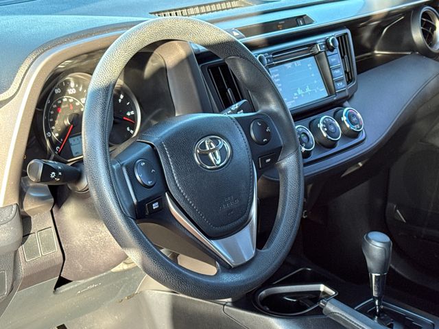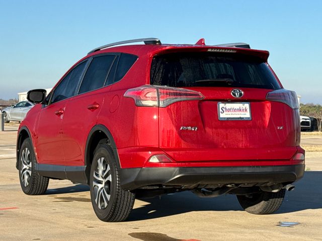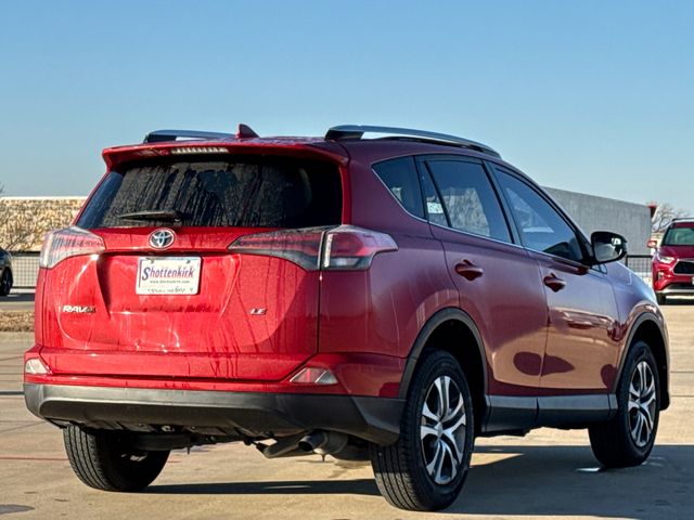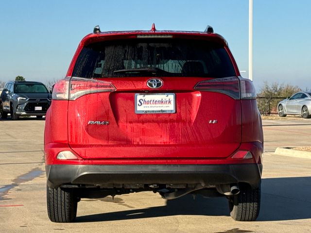 CARFAX One-Owner. 2016 Toyota RAV4 LE 4D Sport Utility LE Hot Lava 2.5L 4-Cylinder DOHC Dual VVT-i 6-Speed Automatic FWD This vehicle comes well equipped with RAV4 LE, 4D Sport Utility, 2.5L 4-Cylinder DOHC Dual VVT-i, 6-Speed Automatic, FWD, Black w/Fabric Seat Trim, 3.815 Axle Ratio, 4-Wheel Disc Brakes, ABS brakes, Brake assist, Bumpers: body-color, Dual front impact airbags, Dual front side impact airbags, Electronic Stability Control, Exterior Parking Camera Rear, Front anti-roll bar, Knee airbag, Low tire pressure warning, Occupant sensing airbag, Overhead airbag, Panic alarm, Power door mirrors, Power steering, Power windows, Rear anti-roll bar, Rear window wiper, Remote keyless entry, Roof rack: rails only, Speed control, Spoiler, Steering wheel mounted audio controls, and Wheels: 17" x 6.5J.