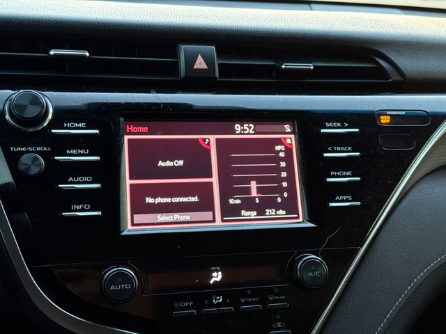 Recent Arrival! CARFAX One-Owner. 2018 Toyota Camry SE 4D Sedan SE Celestial Silver Metallic 2.5L I4 DOHC 16V 8-Speed Automatic FWD This vehicle comes well equipped with 4D Sedan, 2.5L I4 DOHC 16V, 8-Speed Automatic, FWD, Black w/Fabric Seat Trim w/SofTex, 4-Wheel Disc Brakes, ABS brakes, Active Cruise Control, Alloy wheels, Dual front impact airbags, Dual front side impact airbags, Electronic Stability Control, Four wheel independent suspension, Front anti-roll bar, Illuminated entry, Knee airbag, Low tire pressure warning, Occupant sensing airbag, Overhead airbag, Power driver seat, Power steering, Power windows, Rear anti-roll bar, Rear side impact airbag, Remote keyless entry, Speed-sensing steering, Steering wheel mounted audio controls, and Traction control.