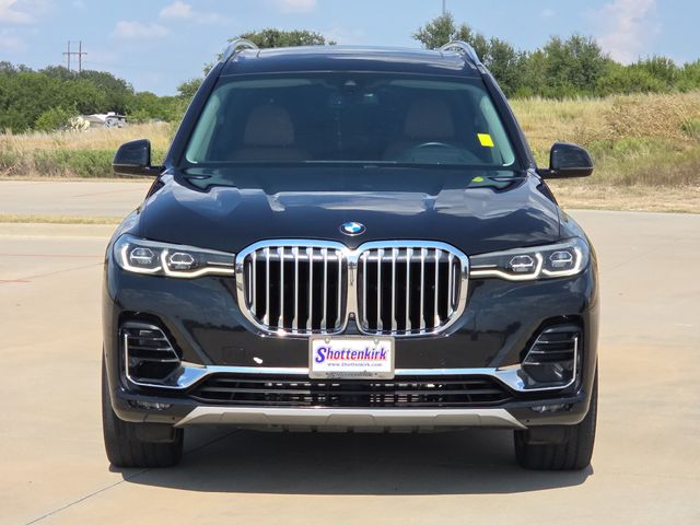 2019 BMW X7 xDrive40i 4D Sport Utility xDrive40i Black Sapphire Metallic 3.0L I6 DOHC 24V 8-Speed Automatic AWD This vehicle comes well equipped with Cold Weather Package (5-Zone Automatic Climate Control, Front & Rear Heated Seats, and Heated Front Seats Armrests & Steering Wheel), Luxury Seating Package (Front Massaging Seats, Front Ventilated Seats, and Multi-Contour Seats), Parking Assistance Package (Parking Assistant Plus, Rear-View Camera, and Surround View w/3D View), Premium Package (Gesture Control, harman/kardon Surround Sound System, Head-Up Display, Heated & Cooled Cup Holders, Rear Electric Side Window Shades, Remote Engine Start, and Soft-Close Automatic Doors), X7 xDrive40i, 4D Sport Utility, 3.0L I6 DOHC 24V, 8-Speed Automatic, AWD, Black Sapphire Metallic, Cognac Leather, Aluminum Running Boards, Auto High-beam Headlights, Auto-dimming door mirrors, Brake assist, Bumpers: body-color, Delay-off headlights, Electronic Stability Control, Exterior Parking Camera Rear, Front fog lights, Fully automatic headlights, Heated door mirrors, Navigation System, Panic alarm, Security system, and Speed control.