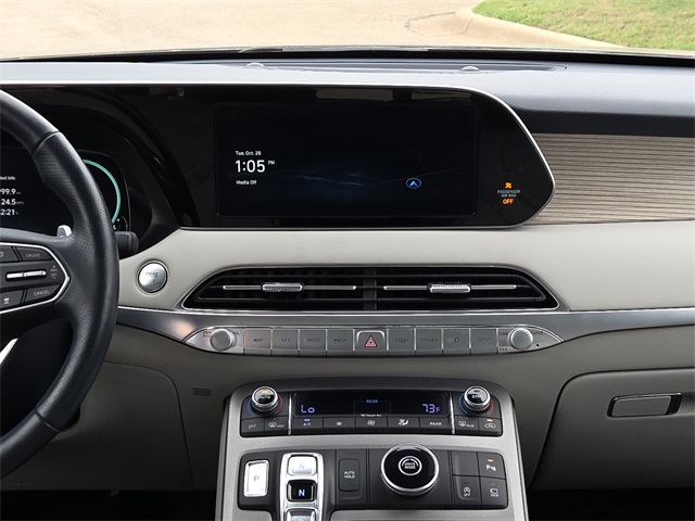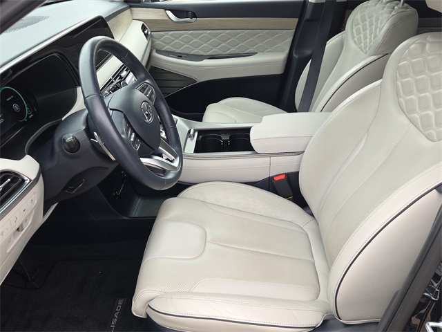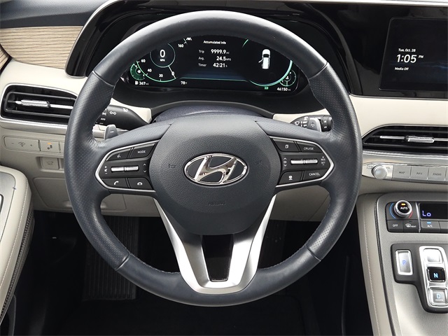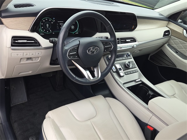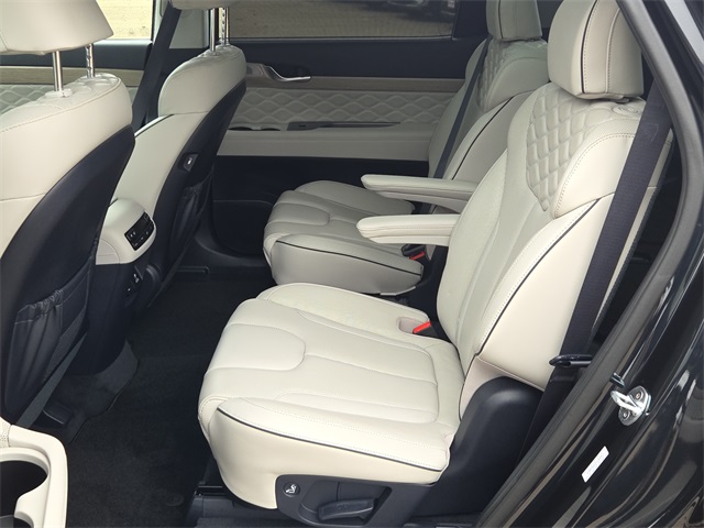 Certified. CARFAX One-Owner. 19/26 City/Highway MPG HYUNDAI CERTIFIED, Palisade Calligraphy, V6, FWD, Moonlight Cloud, Beige Leather, 3rd row seats: split-bench, Apple CarPlay & Android Auto, Auto High-beam Headlights, Auto-dimming Rear-View mirror, Electronic Stability Control, Emergency communication system: Blue Link Connected Car Service (3-year complimentary subscription), harman/kardon® Speakers, Heads-Up Display, Heated & Ventilated Front Bucket Seats, Knee airbag, Memory seat, Navigation System, Option Group 01, Power driver seat, Power Liftgate, Power moonroof, Premium Nappa Leather Seat Trim, Reclining 3rd row seat, Ventilated front seats, Ventilated rear seats. This vehicle comes well equipped with Option Group 01, Palisade Calligraphy, V6, FWD, Moonlight Cloud, Beige Leather, 3rd row seats: split-bench, Apple CarPlay & Android Auto, Auto High-beam Headlights, Auto-dimming Rear-View mirror, Electronic Stability Control, Emergency communication system: Blue Link Connected Car Service (3-year complimentary subscription), harman/kardon® Speakers, Heads-Up Display, Heated & Ventilated Front Bucket Seats, Knee airbag, Memory seat, Navigation System, Power driver seat, Power Liftgate, Power moonroof, Premium Nappa Leather Seat Trim, Reclining 3rd row seat, Ventilated front seats, and Ventilated rear seats Option Group 01, Palisade Calligraphy, V6, FWD, Moonlight Cloud, Beige Leather, 3rd row seats: split-bench, Apple CarPlay & Android Auto, Auto High-beam Headlights, Auto-dimming Rear-View mirror, Electronic Stability Control, Emergency communication system: Blue Link Connected Car Service (3-year complimentary subscription), harman/kardon® Speakers, Heads-Up Display, Heated & Ventilated Front Bucket Seats, Knee airbag, Memory seat, Navigation System, Power driver seat, Power Liftgate, Power moonroof, Premium Nappa Leather Seat Trim, Reclining 3rd row seat, Ventilated front seats, Ventilated rear seats, 12 Speakers, 3.648 Axle Ratio, 4-Wheel Disc Brakes, ABS brakes, Air Conditioning, Alloy wheels, AM/FM radio: SiriusXM, Auto-leveling suspension, Automatic temperature control, Brake assist, Bumpers: body-color, Cargo Net, Cargo Tray, Carpeted Floor Mats, Compass, Delay-off headlights, Driver door bin, Driver vanity mirror, Dual front impact airbags, Dual front side impact airbags, Four wheel independent suspension, Front anti-roll bar, Front Bucket Seats, Front Center Armrest, Front dual zone A/C, Front reading lights, Fully automatic headlights, Garage door transmitter: HomeLink, Heated door mirrors, Heated front seats, Heated rear seats, Heated steering wheel, Illuminated entry, Low tire pressure warning, Mudguards, Occupant sensing airbag, Outside temperature display, Overhead airbag, Overhead console, Panic alarm, Passenger door bin, Passenger vanity mirror, Power door mirrors, Power passenger seat, Power steering, Power windows, Radio data system, Radio: AM/FM/MP3 Premium Audio System, Rain sensing wipers, Rear air conditioning, Rear anti-roll bar, Rear reading lights, Rear window defroster, Rear window wiper, Remote keyless entry, Security system, Speed control, Speed-sensing steering, Split folding rear seat, Spoiler, Steering wheel mounted audio controls, Tachometer, Telescoping steering wheel, Tilt steering wheel, Traction control, Trip computer, Turn signal indicator mirrors, Variably intermittent wipers, Wheel Locks, and Wheels: 20" x 7.5J Calligraphy Exclusive Alloy.