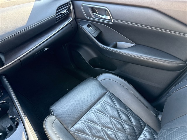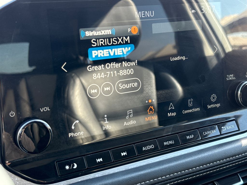 26/34 City/Highway MPG APPLE CAR PLAY, ANDROID AUTO, LEATHER INTERIOR, ALLOY WHEELS, POWER MOONROOF/SUNROOF, POWER DRIVER'S SEAT, POWER PASSENGER SEAT, HEATED FRONT SEATS, COOLED FRONT SEATS, BACK UP CAMERA, LOCAL TRADE IN, WELL MAINTAINED, LOW MILES. This vehicle comes well equipped with 10 Speakers, 19" Aluminum Alloy Wheels, 4-Wheel Disc Brakes, 5.604 Axle Ratio, ABS brakes, Active Cruise Control, Air Conditioning, Alloy wheels, AM/FM radio, Auto High-beam Headlights, Auto-dimming Rear-View mirror, Automatic temperature control, Black Splash Guards (Set of 4), Bose Premium Audio System, Brake assist, Bumpers: body-color, Chrome Rear Bumper Protector, Delay-off headlights, Driver door bin, Driver vanity mirror, Dual front impact airbags, Dual front side impact airbags, Electronic Stability Control, Emergency communication system: NissanConnect Services, Exterior Parking Camera Rear, First Aid Kit, Floor Mats w/2-Piece Cargo Area Protector, Four wheel independent suspension, Front anti-roll bar, Front Bucket Seats, Front Center Armrest, Front dual zone A/C, Front fog lights, Front reading lights, Fully automatic headlights, Heads-Up Display, Heated door mirrors, Heated Front Bucket Seats, Heated front seats, Heated rear seats, Heated steering wheel, Illuminated entry, Illuminated Kick Plates, Knee airbag, Leather steering wheel, Low tire pressure warning, Memory seat, Navigation system: NissanConnect Navigation, NissanConnect featuring Apple CarPlay and Android Auto, Occupant sensing airbag, Outside temperature display, Overhead airbag, Overhead console, Panic alarm, Passenger door bin, Passenger vanity mirror, Power door mirrors, Power driver seat, Power Liftgate, Power moonroof, Power passenger seat, Power steering, Power windows, Quilted Semi-Aniline Leather Seat Trim, Radio data system, Radio: AM/FM NissanConnect w/Navigation, Rear air conditioning, Rear anti-roll bar, Rear seat center armrest, Rear side impact airbag, Rear window defroster, Rear window wiper, Remote keyless entry, Roof rack: rails only, Security system, Special Paint - Pearl White Tricoat, Speed control, Speed-Sensitive Wipers, Split folding rear seat, Spoiler, Steering wheel mounted audio controls, Tachometer, Telescoping steering wheel, Tilt steering wheel, Traction control, Trip computer, Turn signal indicator mirrors, and Variably intermittent wipers.