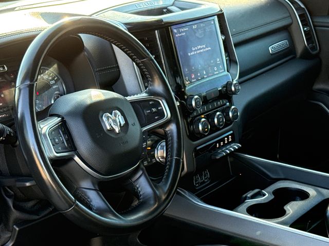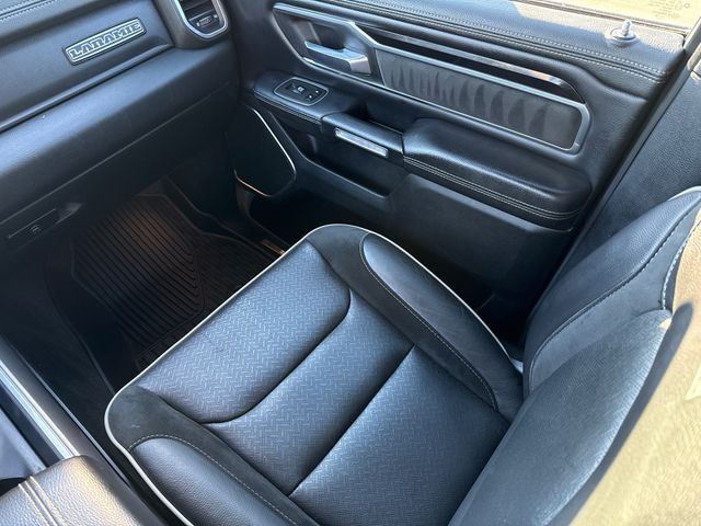 CARFAX One-Owner. 2021 Ram 1500 Laramie 4D Crew Cab Laramie Granite Crystal Metallic Clearcoat HEMI 5.7L V8 Multi Displacement VVT 8-Speed Automatic 4WD This vehicle comes well equipped with Laramie Level An Equipment Group (Auto High Beam Headlamp Control, Foam Bottle Insert (Door Trim Panel), ParkSense Front/Rear Park Assist w/Stop, Rain Sensitive Windshield Wipers, Rear 60/40 Folding Split Recline Seat, Remote Tailgate Release, and Tailgate Ajar Warning Lamp), Quick Order Package 25H Laramie, Sport Appearance Package (Black Interior Accents, Body Color Door Handles, Body Color Exterior Mirrors, Body Color Front Bumper, Body Color Premium Power Mirrors, Body Color Rear Bumper w/Step Pads, Grille Surround 3 Body Color Tex 2 Black, Sport Decal, Sport Performance Hood, and Wheels: 20" x 9" Premium Painted w/Inserts), 1500 Laramie, 4D Crew Cab, HEMI 5.7L V8 Multi Displacement VVT, 8-Speed Automatic, 4WD, Granite Crystal Metallic Clearcoat, Black Leather, Auto-dimming door mirrors, Bumpers: chrome, Chrome Exterior Mirrors, Driver Seat Memory, Front License Plate Bracket, Heated door mirrors, Memory seat, Pedal memory, Power driver seat, Power steering, Power windows, Remote keyless entry, and Steering wheel mounted audio controls.