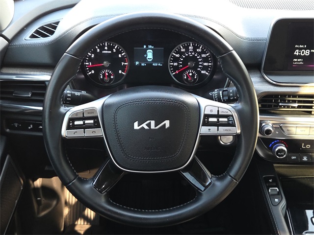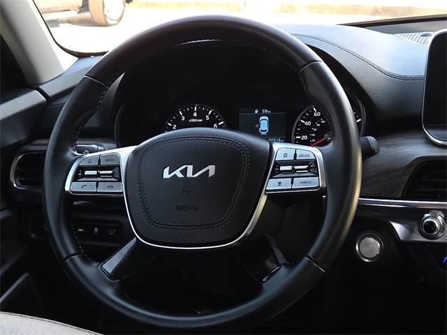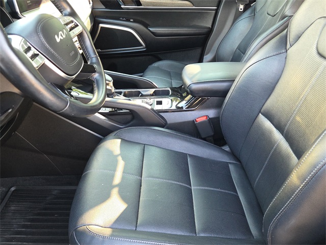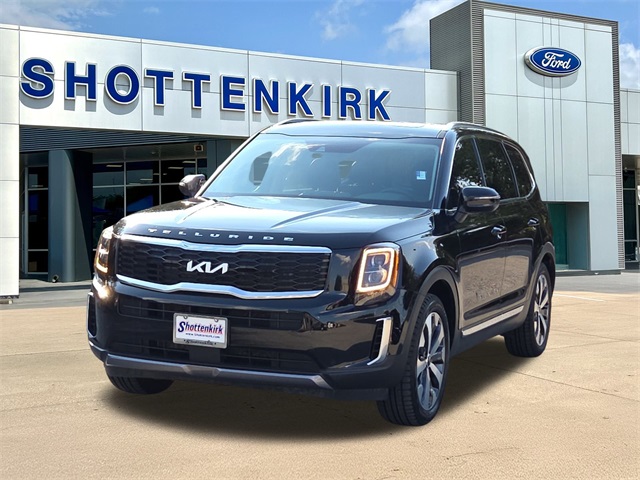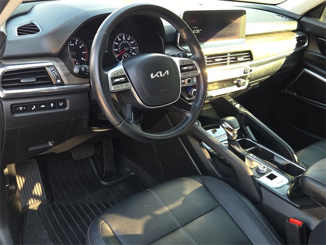 CARFAX One-Owner. 2022 Kia Telluride Ebony Black 4D Sport Utility FWD EX 8-Speed Automatic Telluride EX, 3.8L V6 DOHC, FWD, Ebony Black, 20" x 7.5" Machined Alloy Wheels, 2nd Row Captain Chairs, 3.648 Axle Ratio, 3rd row seats: split-bench, Apple CarPlay & Android Auto, Auto-dimming Rear-View mirror, Automatic temperature control, EX Premium Package, LED Headlamps, Navigation System, Power driver seat, Power moonroof, Remote keyless entry, Satin Chrome Roof Rails, Self Leveling Rear Suspension, Smart Key w/ Push Button and Remote Start, Spoiler, Tow Hitch w/Harness (TOF), Towing Package, Turn signal indicator mirrors. Priced below KBB Fair Purchase Price! Odometer is 14483 miles below market average! 20/26 City/Highway MPG 3.8L V6 DOHC