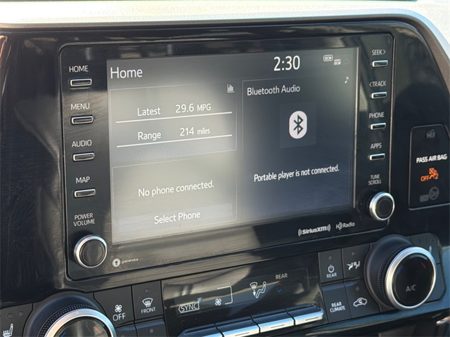 Clean CARFAX. 36/35 City/Highway MPG 2.5L I4 PDI Hybrid DOHC 16V LEV3-SULEV30 186hp, eCVT, FWD, ABS brakes, Active Cruise Control, Alloy wheels, Electronic Stability Control, Front dual zone A/C, Heated door mirrors, Heated Front Bucket Seats, Heated front seats, Illuminated entry, Low tire pressure warning, Power Liftgate, Power moonroof, Remote keyless entry, Traction control. This vehicle comes well equipped with 2.5L I4 PDI Hybrid DOHC 16V LEV3-SULEV30 186hp, eCVT, FWD, ABS brakes, Active Cruise Control, Alloy wheels, Electronic Stability Control, Front dual zone A/C, Heated door mirrors, Heated Front Bucket Seats, Heated front seats, Illuminated entry, Low tire pressure warning, Power Liftgate, Power moonroof, Remote keyless entry, and Traction control 2.5L I4 PDI Hybrid DOHC 16V LEV3-SULEV30 186hp, eCVT, FWD, ABS brakes, Active Cruise Control, Alloy wheels, Electronic Stability Control, Front dual zone A/C, Heated door mirrors, Heated Front Bucket Seats, Heated front seats, Illuminated entry, Low tire pressure warning, Power Liftgate, Power moonroof, Remote keyless entry, Traction control, 3rd row seats: split-bench, 4-Wheel Disc Brakes, 6 Speakers, Air Conditioning, AM/FM radio: SiriusXM, Apple CarPlay/Android Auto, Auto High-beam Headlights, Auto-dimming Rear-View mirror, Automatic temperature control, Axle Ratio TBD, Brake assist, Bumpers: body-color, Delay-off headlights, Driver door bin, Driver vanity mirror, Dual front impact airbags, Dual front side impact airbags, Emergency communication system: Safety Connect with 1-year trial, Exterior Parking Camera Rear, Four wheel independent suspension, Front anti-roll bar, Front Bucket Seats, Front Center Armrest, Front fog lights, Front reading lights, Fully automatic headlights, Garage door transmitter: HomeLink, Knee airbag, Leather Shift Knob, Occupant sensing airbag, Outside temperature display, Overhead airbag, Overhead console, Panic alarm, Passenger door bin, Passenger vanity mirror, Power door mirrors, Power driver seat, Power passenger seat, Power steering, Power windows, Radio: Audio Plus System, Rear air conditioning, Rear anti-roll bar, Rear reading lights, Rear window defroster, Rear window wiper, Reclining 3rd row seat, Roof rack: rails only, Security system, SofTex Seat Trim, Speed control, Speed-sensing steering, Split folding rear seat, Spoiler, Steering wheel mounted audio controls, Telescoping steering wheel, Tilt steering wheel, Trip computer, Turn signal indicator mirrors, Variably intermittent wipers, and Wheels: 18" Machined-Finish Alloy.