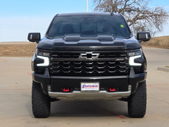 CARFAX One-Owner. 2023 Chevrolet Silverado 1500 ZR2 4D Crew Cab ZR2 Dark Ash Metallic EcoTec3 6.2L V8 10-Speed Automatic 4WD This vehicle comes well equipped with Preferred Equipment Group 3LT (10-Way Power Driver Seat w/Lumbar, 10-Way Power Passenger Seat Adjuster w/Lumbar, 12.3" Multicolor Reconfigurable Digital Display, 120-Volt Bed Mounted Power Outlet, 120-Volt Instrument Panel Power Outlet, 170 Amp Alternator, 2 USB Data Ports, 2nd Row Heated Outboard Seats, All-Weather Floor Liner (LPO), Auto-Dimming Inside Rear-View Mirror, Auto-Locking Rear Differential, Bed View Camera, Bluetooth® For Phone, Chevrolet Connected Access Capable, Chevytec Spray-On Black Bedliner, Color-Keyed Carpeting Floor Covering, Compass, Deep-Tinted Glass, Driver Memory, Dual Exhaust, Dual Rear USB Ports (Charge Only), Electric Rear-Window Defogger, Electrical Steering Column Lock, Electronic Cruise Control, EZ Lift Power Lock & Release Tailgate, Floor Mounted Center Console, Front LED Fog Lamps, Front Rainsensing Wipers, HD Surround Vision, Heated Driver & Front Outboard Passenger Seats, Heated Steering Wheel, Heavy-Duty Air Filter, High Gloss Black Mirror Caps, Hill Descent Control, Hitch Guidance w/Hitch View, Integrated Trailer Brake Controller, Keyless Open & Start, LED Cargo Area Lighting, Manual Tilt/Telescoping Steering Column, OnStar & Chevrolet Connected Services Capable, Outside Heated Power-Adjustable Mirrors, Performance Red Recovery Hooks, Perimeter Lighting, Power Front Passenger Windows w/Express Up/Down, Power Front Windows w/Driver Express Up/Down, Power Rear Windows w/Express Down, Power Sliding Rear Window w/Rear Defogger, Rear Cross Traffic Alert-Braking, Rear Park Assist, Rear Pedestrian Alert, Rear Wheelhouse Liners, Remote Vehicle Starter System, Safety Alert Seat, SiriusXM w/360L, Standard Tailgate, Steering Wheel Audio Controls, Theft Deterrent System (Unauthorized Entry), Trailer Camera Provisions, Trailer Side Blind Zone Alert, Trailering App, Universal Home Remote, Ventilated Driver & Front Passenger Seats, Wi-Fi Hot Spot Capable, Wireless Charging, Wireless Phone Projection, and Wrapped Steering Wheel), Technology Package (15" Diagonal Multicolor Head-Up Display, Adaptive Cruise Control, Power Tilt & Telescoping Steering Column, and Rear Camera Mirror), Trailering Package (Hitch Guidance), Up-Level Rear Seat w/Storage Package, ZR2 Suspension Package, Silverado 1500 ZR2, 4D Crew Cab, EcoTec3 6.2L V8, 10-Speed Automatic, 4WD, Dark Ash Metallic, Jet Black/Graystone Leather, Auto-dimming door mirrors, Electronic Transmission Range Selector Shifter, Front License Plate Kit, Heated door mirrors, and Speed control.