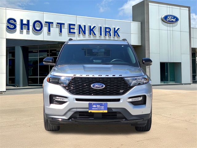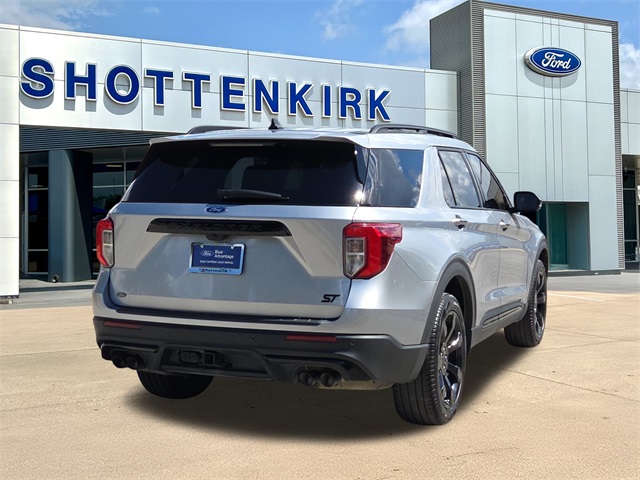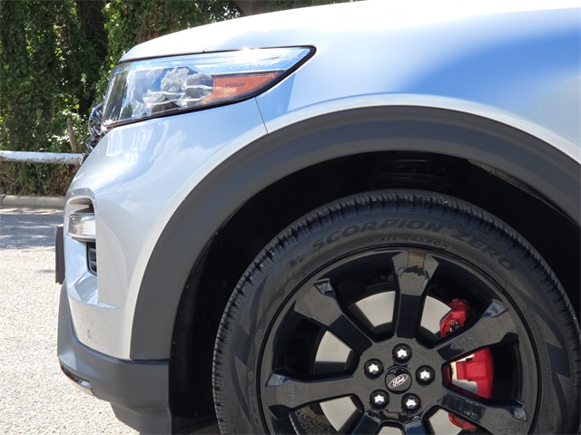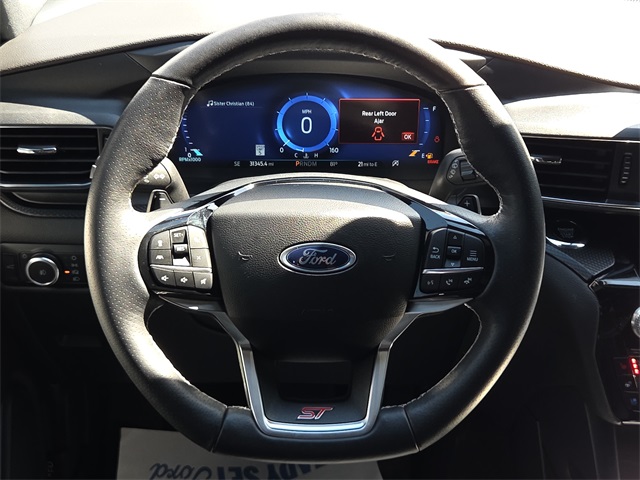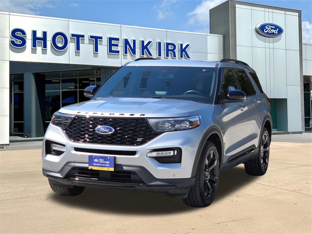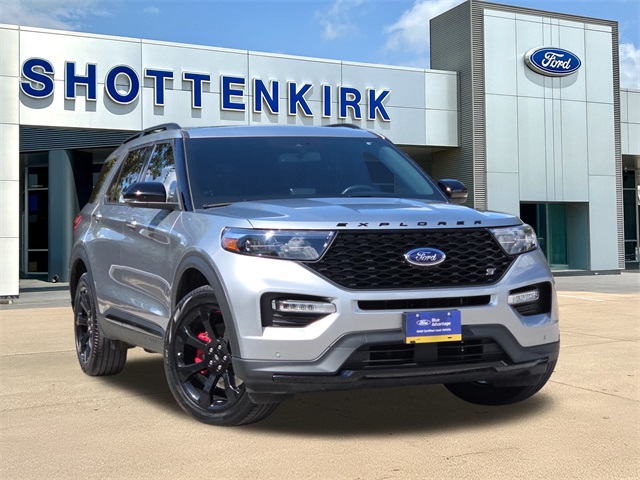 CARFAX One-Owner. Certified. Clean CARFAX. 2023 Ford Explorer Iconic Silver Metallic 4D Sport Utility 4WD ST 10-Speed Automatic Explorer ST, 3.0L EcoBoost V6, 4WD, Ebony Leather, 110V/150W AC Power Outlet, 360-Degree Camera w/Split View, 3rd row seats: bench, 4G LTE Wi-Fi Hotspot Credit, Auto High-beam Headlights, Auto-Dimming Rearview Mirror (Interior), Delay-off headlights, Equipment Group 401A, Evasive Steering Assist, Ford Co-Pilot360 Assist+, Front Parking Sensors, Front Rain-Sensing Wipers, Heated front seats, Heated steering wheel, Intelligent Adaptive Cruise Control, Leather Htd/Ventilated Sport Captain's Chairs, Memory Driver's Seat, Performance Front & Rear Brakes, Power Liftgate, Power Tilt/Telescoping Steering Column, Radio: B&O Sound System by Bang & Olufsen, Reverse Brake Assist, Second Row Heated Seats, Sideview Mirrors w/Gloss Black Caps, Speed Sign Recognition, ST High Package, ST Street Pack, Third Row PowerFold (Folds Flat), Twin Panel Moonroof, Universal Garage Door Opener (UGDO), Voice-Activated Touchscreen Navigation System, Wheels: 21" Aluminum, Wireless Charging Pad. Priced below KBB Fair Purchase Price! Odometer is 3047 miles below market average! 3.0L EcoBoost V6