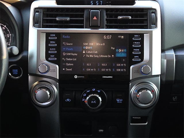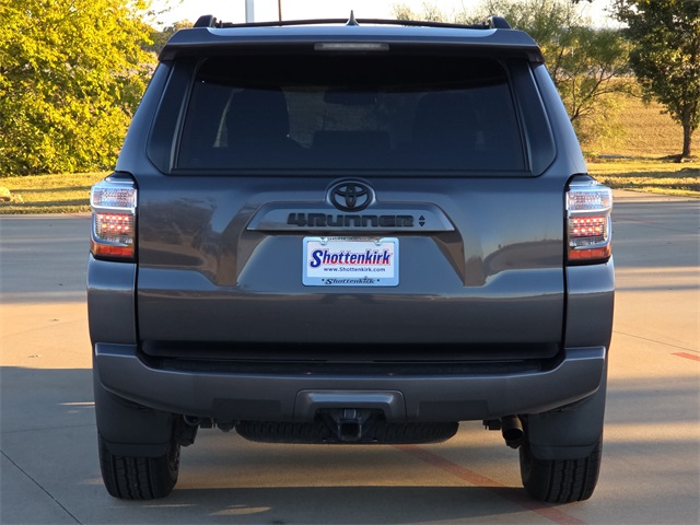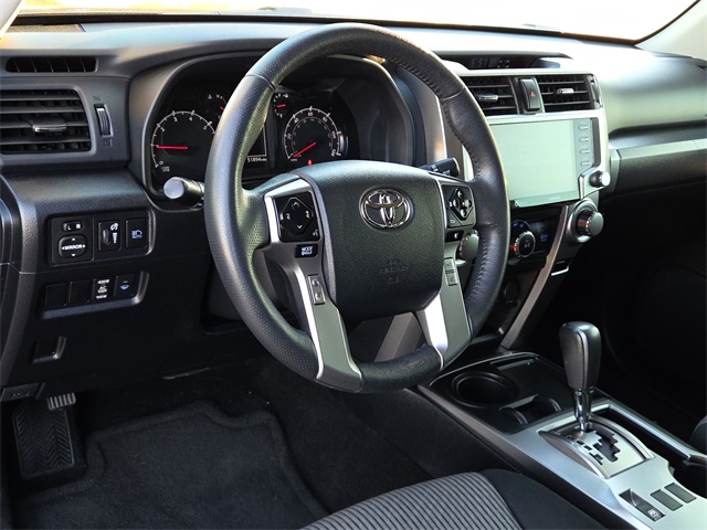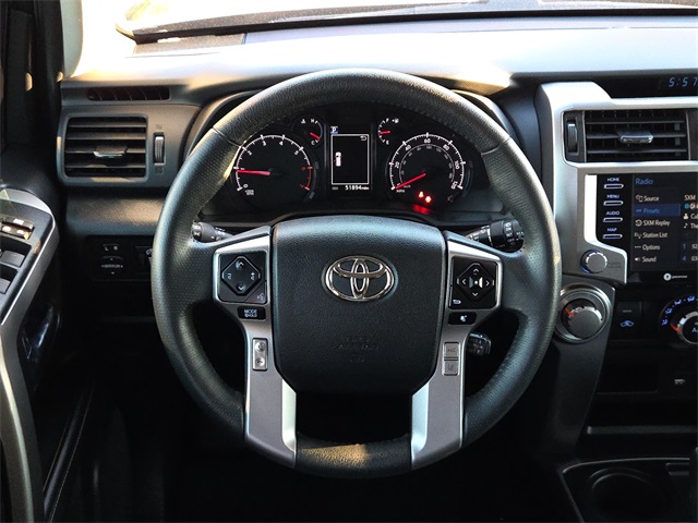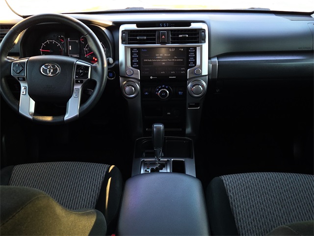 CARFAX One-Owner. 2023 Toyota 4Runner SR5 4D Sport Utility SR5 Magnetic Gray Metallic 4.0L V6 DOHC 24V 5-Speed with ECT RWD This vehicle comes well equipped with 4Runner SR5, 4D Sport Utility, 4.0L V6 DOHC 24V, 5-Speed with ECT, RWD, Black/Graphite w/Fabric Seat Trim, Apple CarPlay/Android Auto, Bumpers: body-color, Driver door bin, Driver vanity mirror, Front reading lights, Heated door mirrors, Illuminated entry, Leather Shift Knob, Leather steering wheel, Outside temperature display, Overhead console, Panic alarm, Passenger vanity mirror, Power door mirrors, Security system, Speed control, and Spoiler.