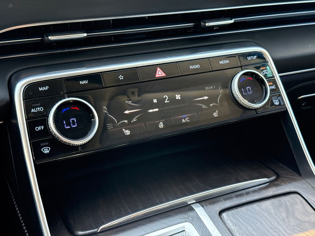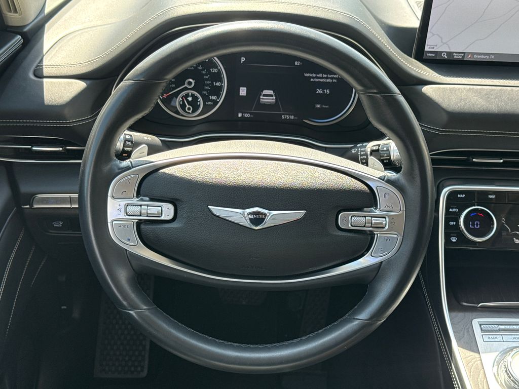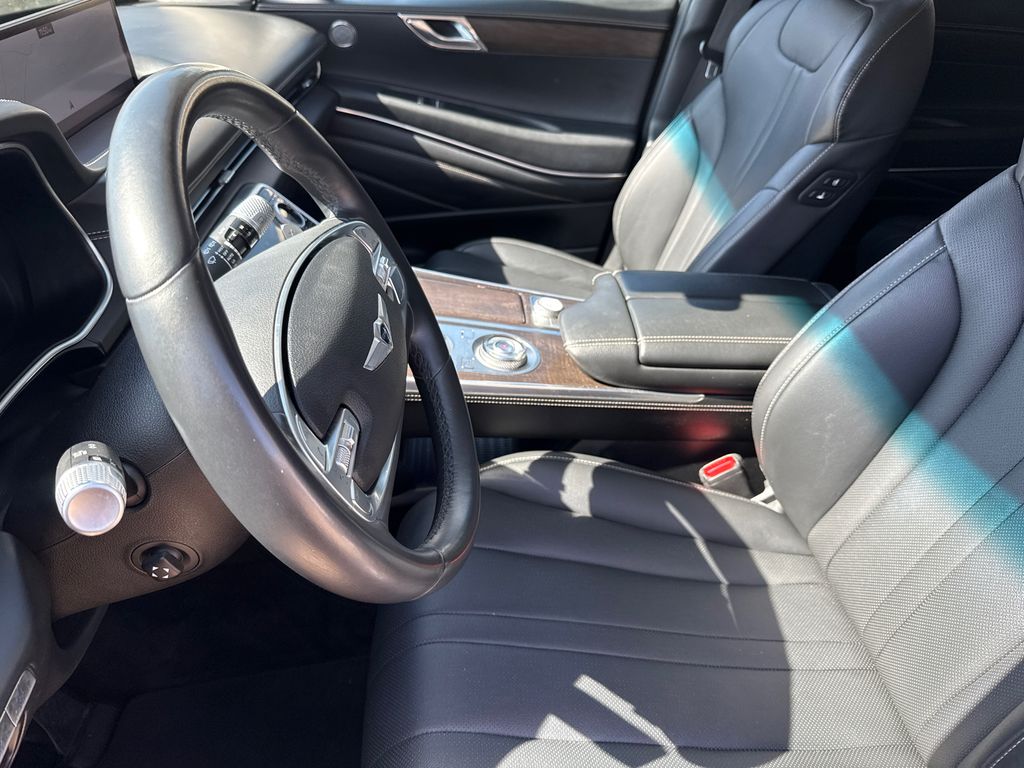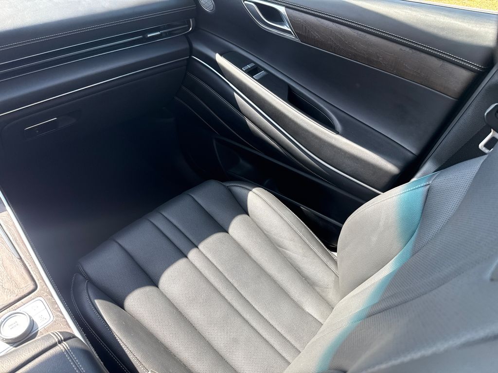 CARFAX One-Owner. Clean CARFAX. APPLE CAR PLAY, ANDROID AUTO, LEATHER INTERIOR, ALLOY WHEELS, LCD DISPLAY SCREEN, POWER DRIVER'S SEAT, POWER PASSENGER SEAT, HEATED FRONT SEATS, REAR A/C, BLIND SPOT MONITOR, BACK UP CAMERA, WELL MAINTAINED. This vehicle comes well equipped with Option Group 01, 12 Speakers, 4-Wheel Disc Brakes, 4.363 Axle Ratio, ABS brakes, Air Conditioning, Alloy wheels, AM/FM radio: SiriusXM, Android Auto & Apple CarPlay, Anti-whiplash front head restraints, Auto High-beam Headlights, Auto tilt-away steering wheel, Auto-dimming door mirrors, Auto-dimming Rear-View mirror, Auto-leveling suspension, Automatic temperature control, Blind-Spot View Monitor, Brake assist, Bumpers: body-color, Compass, Delay-off headlights, Driver door bin, Driver vanity mirror, Dual front impact airbags, Dual front side impact airbags, Electronic Stability Control, Emergency communication system: Genesis Connected Services, Exterior Parking Camera Rear, Forward Attention Warning, Four wheel independent suspension, Front anti-roll bar, Front Bucket Seats, Front Center Armrest, Front dual zone A/C, Front reading lights, Fully automatic headlights, Garage door transmitter: HomeLink, Genuine wood console insert, Genuine wood dashboard insert, Genuine wood door panel insert, Heated door mirrors, Heated Front Bucket Seats, Heated front seats, Heated steering wheel, Illuminated entry, Knee airbag, Leather steering wheel, Leatherette Seating Surfaces, Low tire pressure warning, Memory seat, Navigation System, Occupant sensing airbag, Outside temperature display, Overhead airbag, Overhead console, Panic alarm, Passenger door bin, Passenger vanity mirror, Power door mirrors, Power driver seat, Power Liftgate, Power passenger seat, Power steering, Power windows, Radio data system, Radio:14.5" Navigation System w/AM/FM/HD Radio, Rain sensing wipers, Rear air conditioning, Rear anti-roll bar, Rear reading lights, Rear seat center armrest, Rear side impact airbag, Rear window defroster, Rear window wiper, Remote keyless entry, Security system, Speed control, Speed-sensing steering, Speed-Sensitive Wipers, Split folding rear seat, Spoiler, Steering wheel memory, Steering wheel mounted audio controls, Tachometer, Telescoping steering wheel, Tilt steering wheel, Traction control, Trip computer, Turn signal indicator mirrors, Variably intermittent wipers, and Wheels: 19" x 8.5J Medium Metallic Gray Alloy.