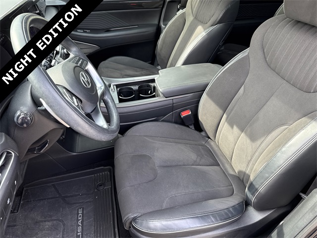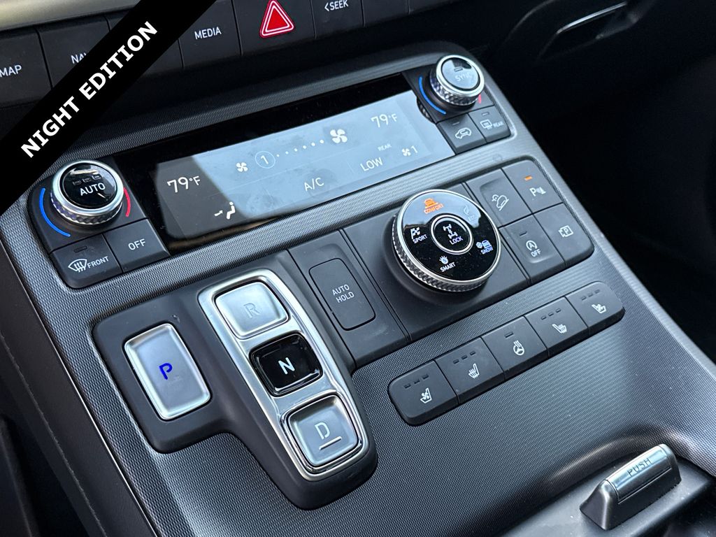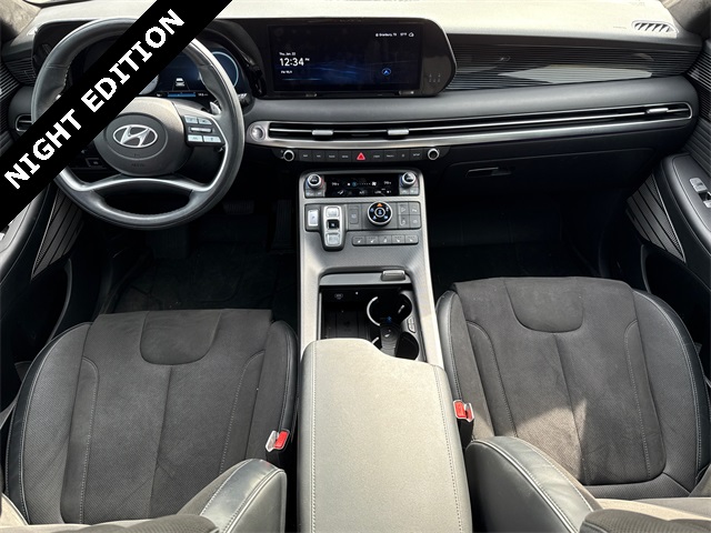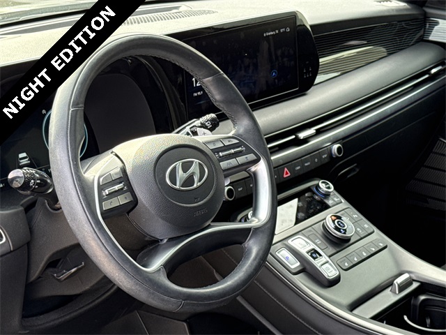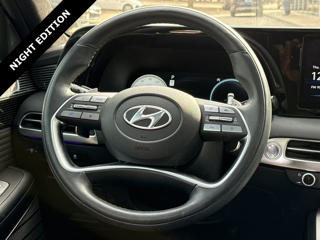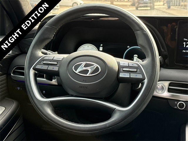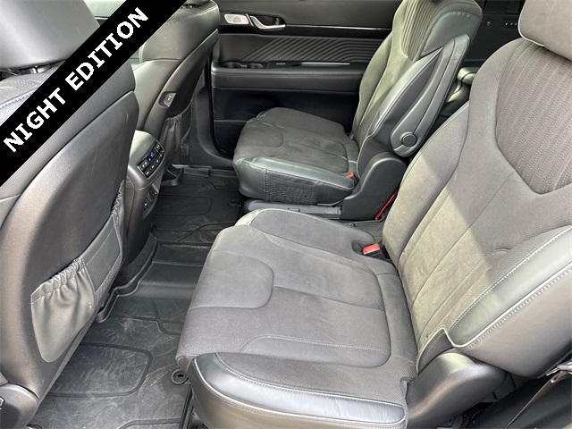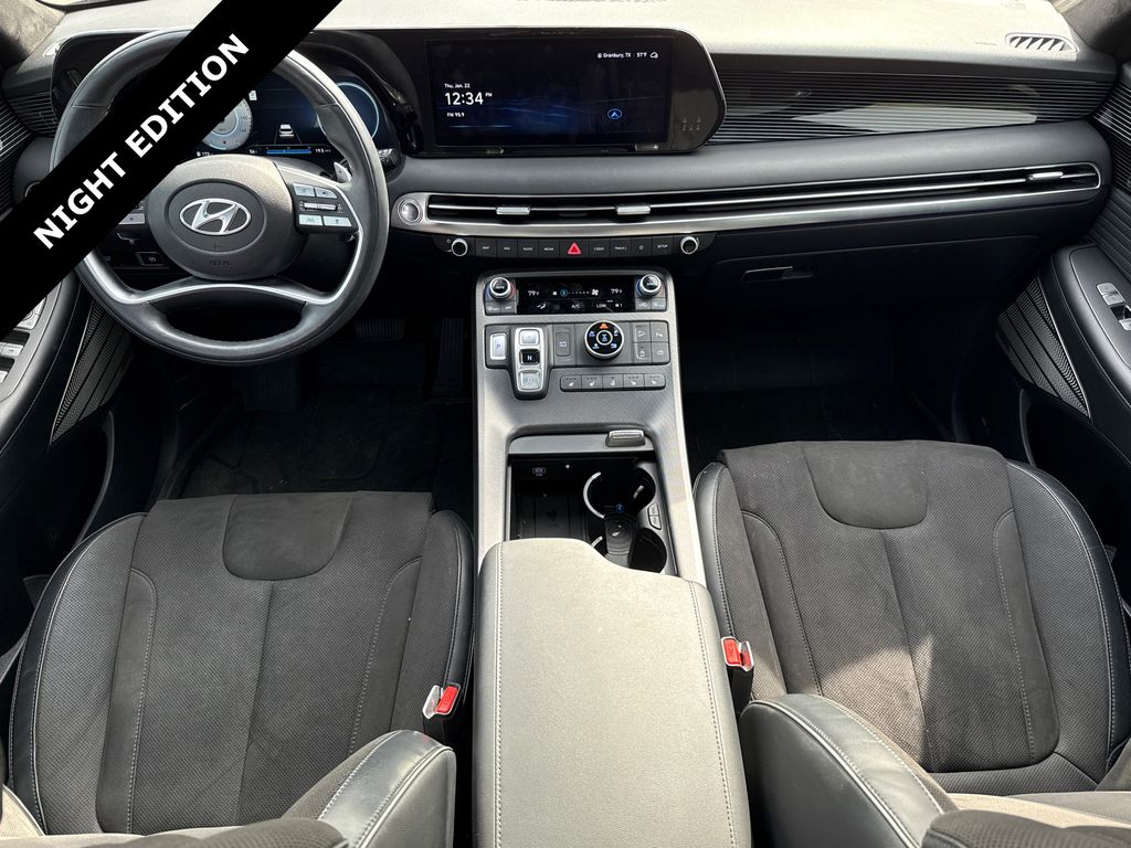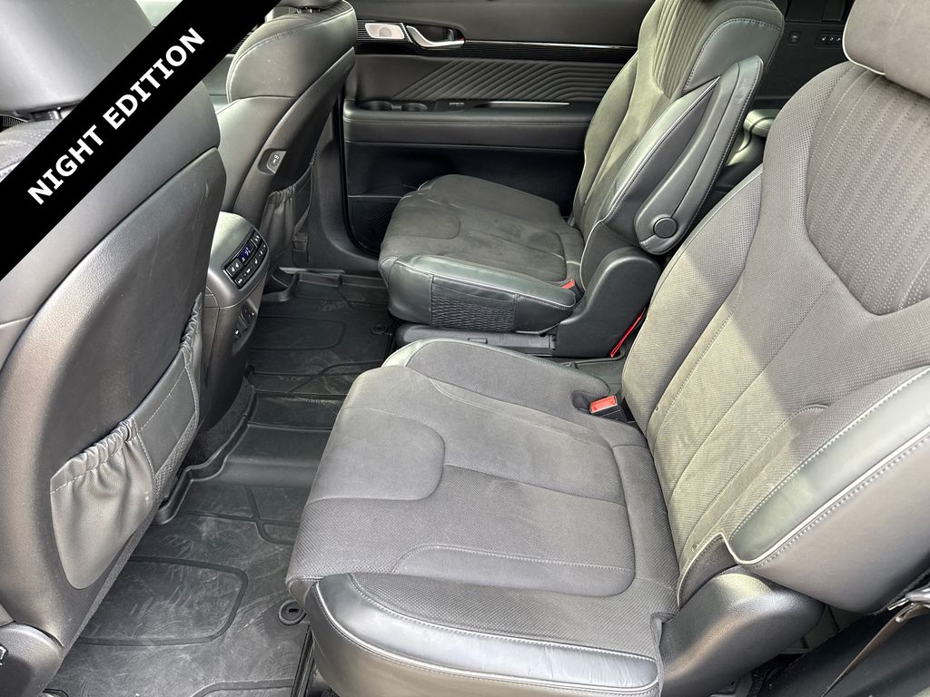 CARFAX One-Owner. APPLE CAR PLAY, LEATHER INTERIOR, POWER MOONROOF/SUNROOF, POWER DRIVER'S SEAT, POWER PASSENGER SEAT, HEATED FRONT SEATS, COOLED FRONT SEATS, REAR A/C, 3RD ROW SEAT, LOCAL TRADE IN, WELL MAINTAINED, BALANCE OF FACTORY WARRANTY, HYUNDAI CERTIFIED. This vehicle comes well equipped with Option Group 01, 12 Speakers, 3.648 Axle Ratio, 3rd row seats: split-bench, 4-Wheel Disc Brakes, ABS brakes, Air Conditioning, All-Season Fitted Liners, Alloy wheels, AM/FM radio: SiriusXM, Apple CarPlay & Android Auto, Auto High-beam Headlights, Auto-dimming door mirrors, Auto-dimming Rear-View mirror, Auto-leveling suspension, Automatic temperature control, Brake assist, Bumper Applique, Bumpers: body-color, Cargo Tray, Carpeted Floor Mats, Compass, Delay-off headlights, Driver door bin, Driver vanity mirror, Dual front impact airbags, Dual front side impact airbags, Electronic Stability Control, Emergency communication system, Exterior Parking Camera Rear, First Aid Kit, Four wheel independent suspension, Front anti-roll bar, Front Bucket Seats, Front Center Armrest, Front dual zone A/C, Front reading lights, Fully automatic headlights, Garage door transmitter: HomeLink, harman/kardon® Speakers, Heads-Up Display, Heated & Ventilated Front Bucket Seats, Heated door mirrors, Heated front seats, Heated rear seats, Heated steering wheel, Illuminated entry, Knee airbag, Low tire pressure warning, Memory seat, Microfiber Suede Seat Trim, Navigation System, Occupant sensing airbag, Outside temperature display, Overhead airbag, Overhead console, Panic alarm, Passenger door bin, Passenger vanity mirror, Power door mirrors, Power driver seat, Power Liftgate, Power moonroof, Power passenger seat, Power steering, Power windows, Radio data system, Radio: AM/FM/MP3 Premium Audio System, Rain sensing wipers, Rear air conditioning, Rear anti-roll bar, Rear audio controls, Rear reading lights, Rear side impact airbag, Rear window defroster, Rear window wiper, Reclining 3rd row seat, Remote keyless entry, Roof rack, Security system, Speed control, Speed-sensing steering, Split folding rear seat, Spoiler, Steering wheel mounted audio controls, Tachometer, Telescoping steering wheel, Tilt steering wheel, Tow Hitch, Traction control, Trip computer, Turn signal indicator mirrors, Variably intermittent wipers, Ventilated front seats, Ventilated rear seats, Wheel Locks, and Wheels: 20" x 7.5J Black Liquid Paint Alloy.