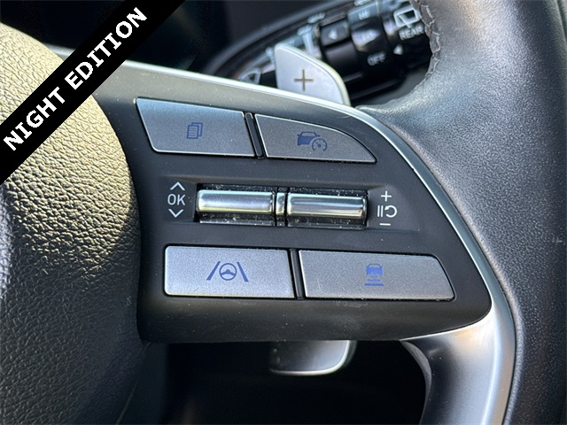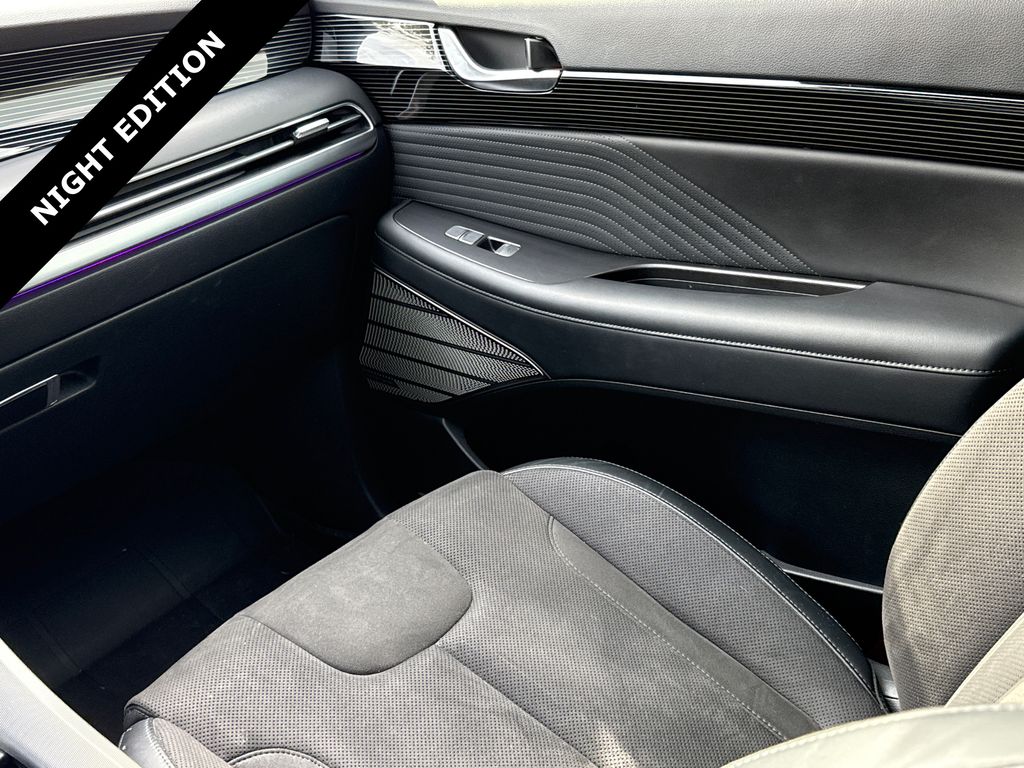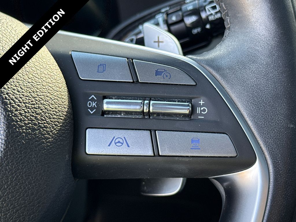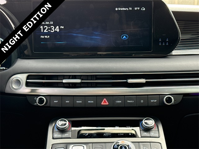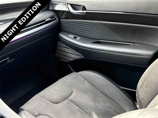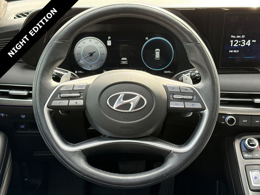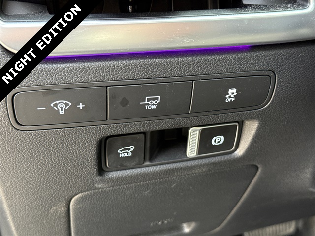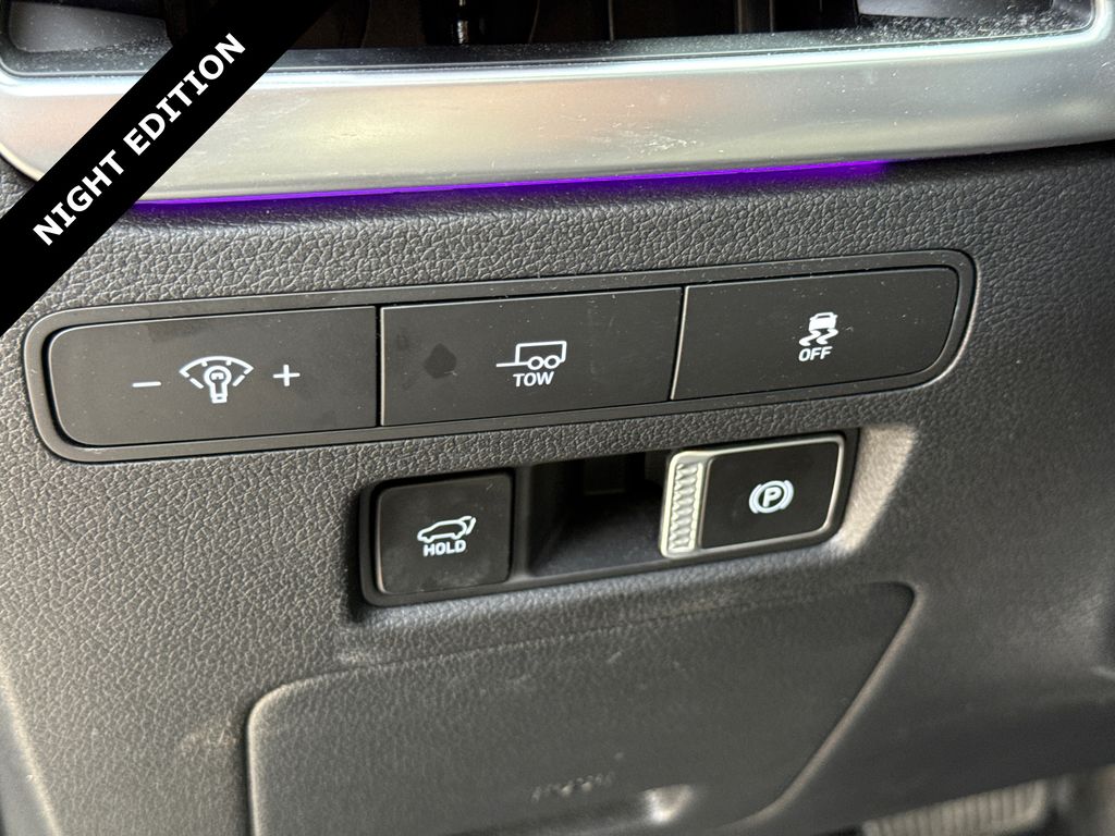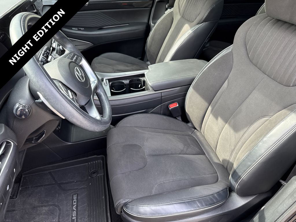 CARFAX One-Owner. APPLE CAR PLAY, LEATHER INTERIOR, POWER MOONROOF/SUNROOF, POWER DRIVER'S SEAT, POWER PASSENGER SEAT, HEATED FRONT SEATS, COOLED FRONT SEATS, REAR A/C, 3RD ROW SEAT, LOCAL TRADE IN, WELL MAINTAINED, BALANCE OF FACTORY WARRANTY, HYUNDAI CERTIFIED. This vehicle comes well equipped with Option Group 01, 12 Speakers, 3.648 Axle Ratio, 3rd row seats: split-bench, 4-Wheel Disc Brakes, ABS brakes, Air Conditioning, All-Season Fitted Liners, Alloy wheels, AM/FM radio: SiriusXM, Apple CarPlay & Android Auto, Auto High-beam Headlights, Auto-dimming door mirrors, Auto-dimming Rear-View mirror, Auto-leveling suspension, Automatic temperature control, Brake assist, Bumper Applique, Bumpers: body-color, Cargo Tray, Carpeted Floor Mats, Compass, Delay-off headlights, Driver door bin, Driver vanity mirror, Dual front impact airbags, Dual front side impact airbags, Electronic Stability Control, Emergency communication system, Exterior Parking Camera Rear, First Aid Kit, Four wheel independent suspension, Front anti-roll bar, Front Bucket Seats, Front Center Armrest, Front dual zone A/C, Front reading lights, Fully automatic headlights, Garage door transmitter: HomeLink, harman/kardon® Speakers, Heads-Up Display, Heated & Ventilated Front Bucket Seats, Heated door mirrors, Heated front seats, Heated rear seats, Heated steering wheel, Illuminated entry, Knee airbag, Low tire pressure warning, Memory seat, Microfiber Suede Seat Trim, Navigation System, Occupant sensing airbag, Outside temperature display, Overhead airbag, Overhead console, Panic alarm, Passenger door bin, Passenger vanity mirror, Power door mirrors, Power driver seat, Power Liftgate, Power moonroof, Power passenger seat, Power steering, Power windows, Radio data system, Radio: AM/FM/MP3 Premium Audio System, Rain sensing wipers, Rear air conditioning, Rear anti-roll bar, Rear audio controls, Rear reading lights, Rear side impact airbag, Rear window defroster, Rear window wiper, Reclining 3rd row seat, Remote keyless entry, Roof rack, Security system, Speed control, Speed-sensing steering, Split folding rear seat, Spoiler, Steering wheel mounted audio controls, Tachometer, Telescoping steering wheel, Tilt steering wheel, Tow Hitch, Traction control, Trip computer, Turn signal indicator mirrors, Variably intermittent wipers, Ventilated front seats, Ventilated rear seats, Wheel Locks, and Wheels: 20" x 7.5J Black Liquid Paint Alloy.