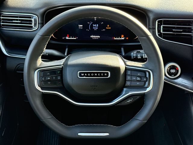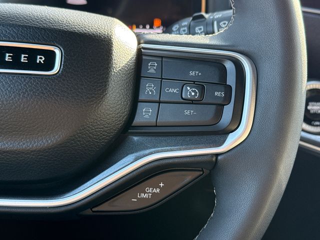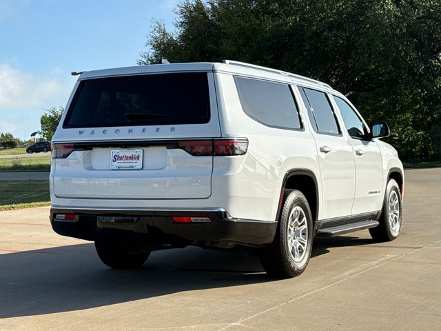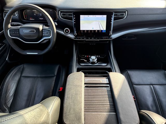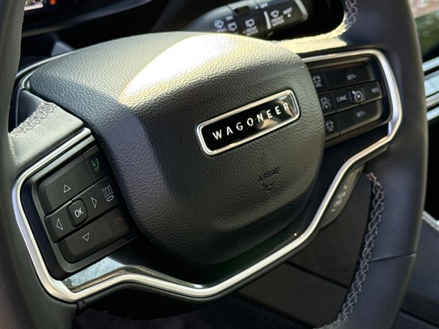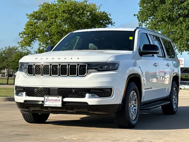 CARFAX One-Owner. 2024 Jeep Wagoneer L Base 4D Sport Utility Bright White Clearcoat 3.0L I6 8-Speed Automatic 4WD This vehicle comes well equipped with Convenience Group I (2nd Row Manual Window Shades, Active Lane Management System, Adaptive Cruise Control w/Stop & Go, Auto High Beam Headlamp Control, Heated Second Row Seats, P&P Park & Unpark Assist w/Stop System, Rack Cargo Management System, Rain Sensitive Windshield Wipers, Side Distance Warning, and Surround View Camera System), Quick Order Package 25E, 4D Sport Utility, 8-Speed Automatic, 4WD, Bright White Clearcoat, Black Leather, Brake assist, Delay-off headlights, Electronic Stability Control, Exterior Parking Camera Rear, Front fog lights, Fully automatic headlights, Memory seat, Navigation System, Panic alarm, Pedal memory, Power driver seat, Power Liftgate, Power steering, Power windows, Remote keyless entry, Security system, Speed control, Steering wheel memory, and Steering wheel mounted audio controls.