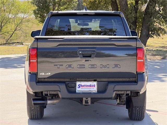 CARFAX One-Owner. 2024 Toyota Tacoma SR 4D Double Cab SR Underground 2.4L 4-Cylinder 8-Speed Automatic 4WD This vehicle comes well equipped with SR Upgrade Package (Blind Spot Monitor w/Rear Cross Traffic Alert, Deck Rail System, Digital Key Capability, Front & Rear Parking Assist w/Automatic Braking, and LED Bed Lighting), Tacoma SR, 4D Double Cab, 2.4L 4-Cylinder, 8-Speed Automatic, 4WD, Underground, Black w/SofTex Seat Trim (EB), Body Side Molding (TMS), Bumpers: body-color, Front & Rear Mud Guards, Heated door mirrors, Power door mirrors, Rear step bumper, and Spray-On Bed Liner (TMS)